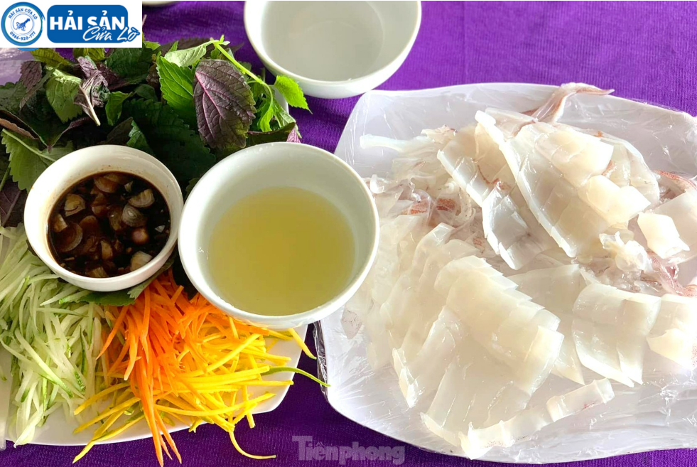 Sau khi cập bờ, mực được chia thành từng mớ nhỏ, bỏ trong khay bày bán cho du khách. Mỗi mớ 6 – 10 con tùy vào kích thước, giá mỗi khay dao động từ 100.000 – 150.000 đồng.